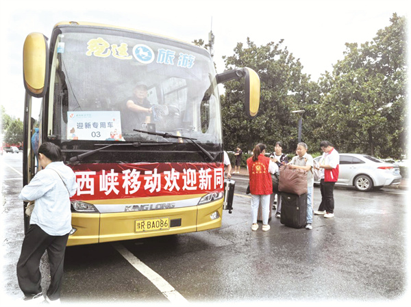 9月6日是南阳职业学院新生入校时间,西峡分公司组织车辆和工作人员到西峡火车站助力新生报到,帮新生搬运行李,给新生发放公司名片,介绍其加入公司业务群,以便了解客运业务信息,增加客源。